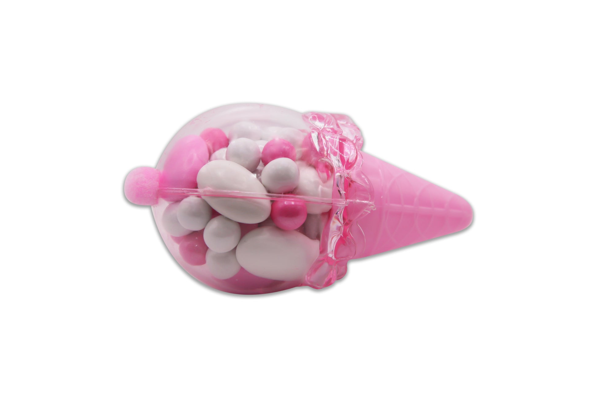 Pink Ice Cream Cone with Pink Pom Pom - Pink and White Sixlets Candies and Jordan Almonds